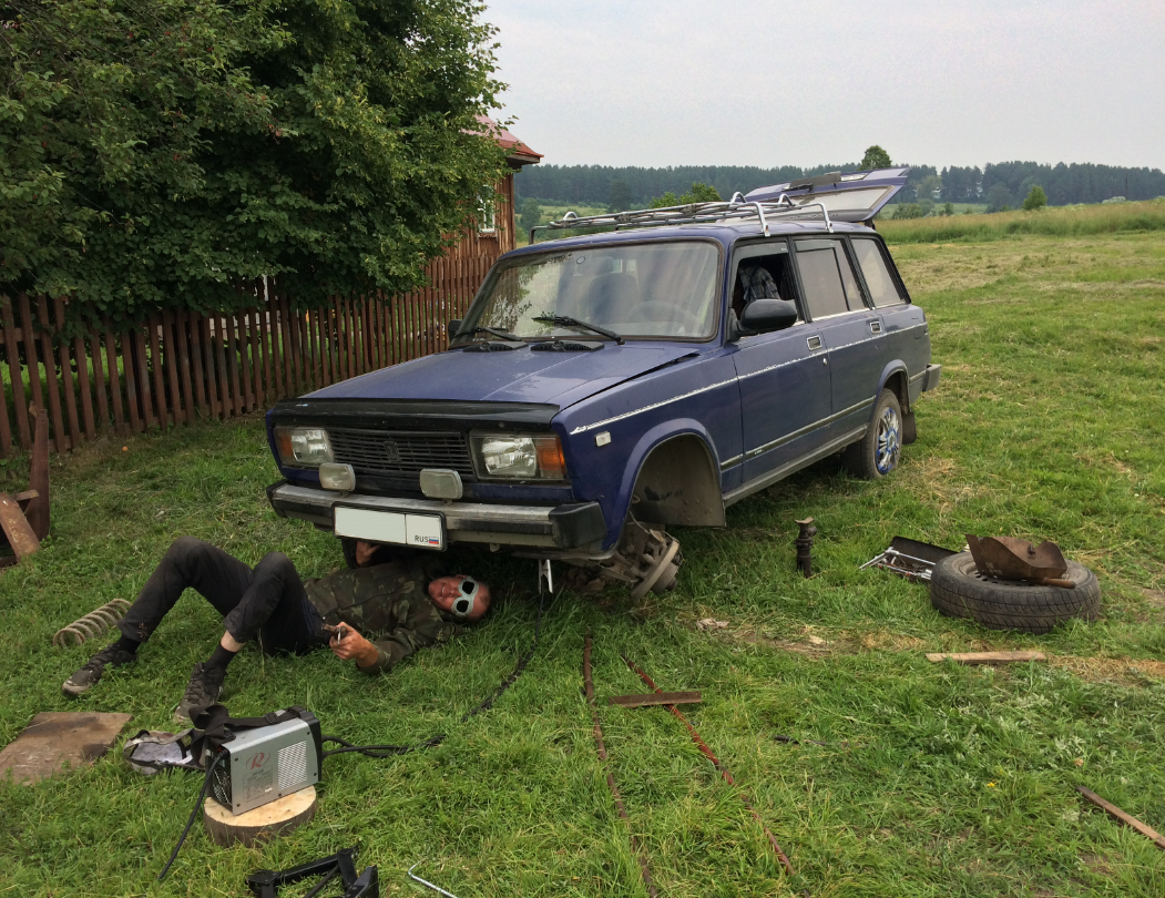 В общем, дотянул я до нужного населённого пункта. Слава Богу, что нашелся умелый человек с правильным расположением рук, обладающий необходимым инструментом и навыками. Понятное дело, что балку надо было варить. Или менять. Но для этого ее надо где-то купить (в глуши, в выходной день - это почти безнадёга), да и поставить её не так просто. Проще заварить. Заварили, собрали. Я думал не доеду обратно, однако доехал (250км до дома), так еще потом несколько раз ездил в деревню к тёще с тестем, а батя на ней ездил на свою дачу. Резину это всё конечно подожрало, но она и так была уже не новая. Так что не жалко особо.