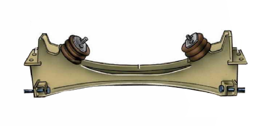 Вот упрощенно. Сверху на подушках двигатель, снизу с обоих сторон - болты крепления оси нижних рычагов. Верхние рычаги крепятся к кузову.
