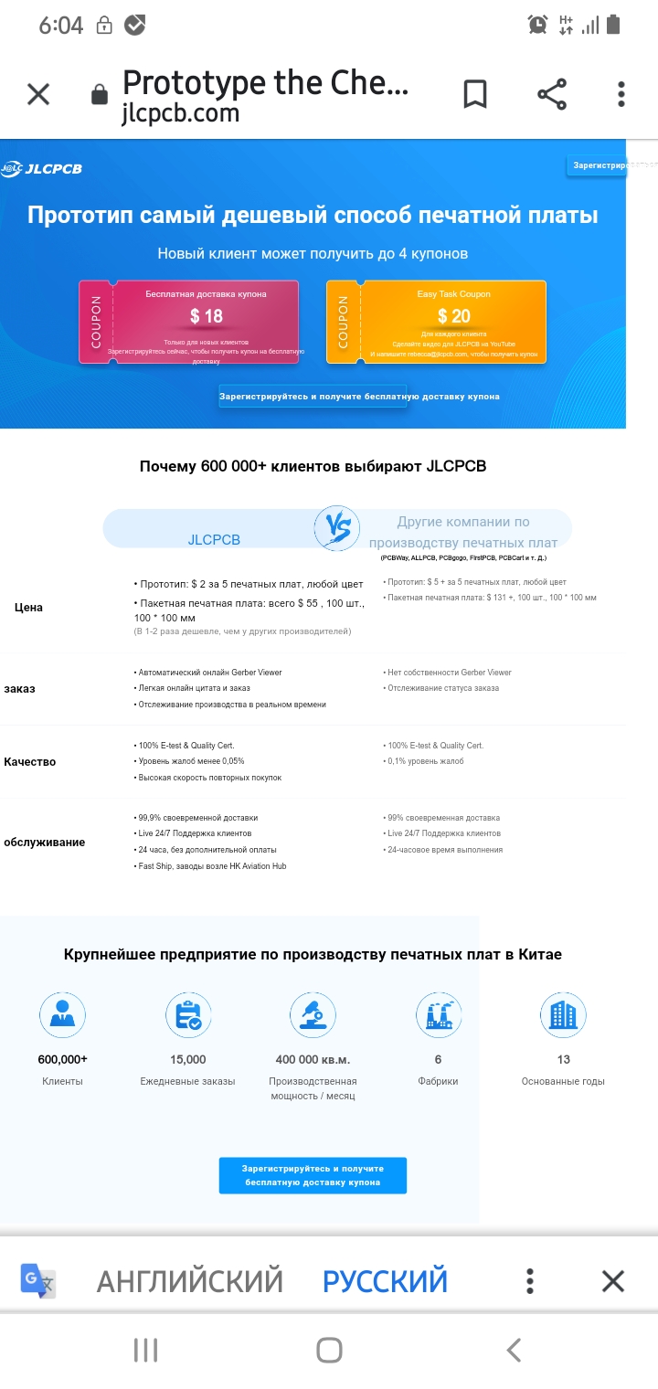 Это где так бесплатная доставка? На JLCPCB доставка платная даже если размеры платы не превышает 100х100мм