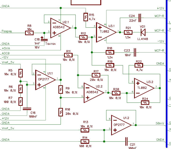 Просто к примеру, возьмем,что вылетел ОУ U2.2 какое напряжение должен быть на обе их входах и какое напряжение на выходе вольтах,милливольты минус или плюс. Как будете определять что он жив или умер,и в каком режиме. Для этого надо знать напряжение на входах и знать какое напряжение должен быть.Вот что я имел ввиду! Честно говоря я даже еще просто бегло посмотрел схему и не было времени вникать в дело. Тут выше было скинуто Архив там то же так бегло просмотрел.Надо сидеть ,читать внимательно вникнуть курс дела и станет более ясно,хоть как то. Все очень хорошо понимает тот кто разработал схему им все ясно,что где какое напряжение должен быть при не исправности элементов. Схему разрабатывают и рассчитывают элементы не с потолка,люди Институт заканчивают имеют большой опыт электроники,а я всего лишь 10 классов,училище(Слесарь электрик по бытовым приборам и машинами),данное время Электрик. Но кое что в радио электронике разбираюсь без посторонней помощи, и ни один ЗУ собирал и настраивал по высокой стороне с осцилографом подборы RC кламперов и выходных диодах,полностью доведя как положено,так же и усилители ремонтировал.