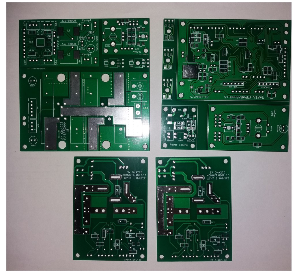 Вместо С4 0.22мкФ по ошибке стоял конденсатор на 22мкФ. Начало входить в режим, но выяснилось, что БП больше 4х ампер просто не держит, хотя рассчитывался он на ток порядка 30А. При этом моментально раскалялись силовые транзисторы, что навело на мысль об их контрафакте. После их замены на заведомо оригинальные БП стал держать ток, но начал жутко верещать. Потом пошел дым с резистора на 15 ом 2 вт, который стоит в RC-цепочке между вторичными обмотками (кондер 10 нан и выше упомянутый резистор). В текущей схеме NuSen2.0 этой цепочки нет, а есть только цепочки параллельно диодам сборки. Но в данном ЗУ есть и то, и другое. Выпаял эту цепочку вообще и БП стал вырубаться при достижении определенного напряжения на его выходе. Прям вот работает, увеличиваешь выходное напряжение и чпок - срыв генерации. Импульсы от TL494 идут, но БП не работает. Есть у меня некогда комповый БП, переделанный в регулируемый. Работал он бесшумно, потому было решено позаимствовать из него силовой транс и ТГР. Выпаял из ЗУ его "родные" (кстати, перемотанные хозяином) детали и поставил свои - БП завелся, но тоже верещал. Решил еще поменять дроссель и вот она долгожданная тишина! Поставил на место RC-цепочку - ничего не дымит.. 12 Ампер держит, дальше не стал накручивать. Красота. Как я не пытался, но так и не смог заставить БП работать с "родными" трансом и ТГР даже со своим дросселем: свистит до какого-то момента, а потом просто генерация обрывается.
