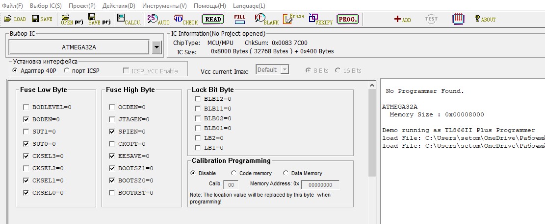 Упёрся в ATMEGA32A, но она вроде работает, индикатор всё показывает. Решил с работающего ЗУ NuSen 1,5 снять 32-ю и поставить. Так и сделал. Всё заработало, в чём дело? Скачал с неё прошивку, там ver.1.09_Beta4 сравнил, оказалось фьюзы разные. Начал копать, в чём же дело? обычно программатор ставит фьюзы такие как в прошивке, оказалось нет. Ставит такие как у него забиты в программе для этой микросхемы. Надо принудительно забивать правильные фьюзы!!! У меня китайский TL866II Plus. Вот что он выставляет и как должно быть. Поставил