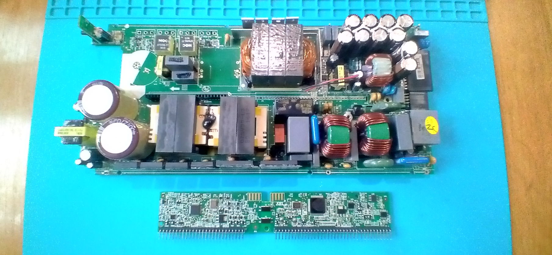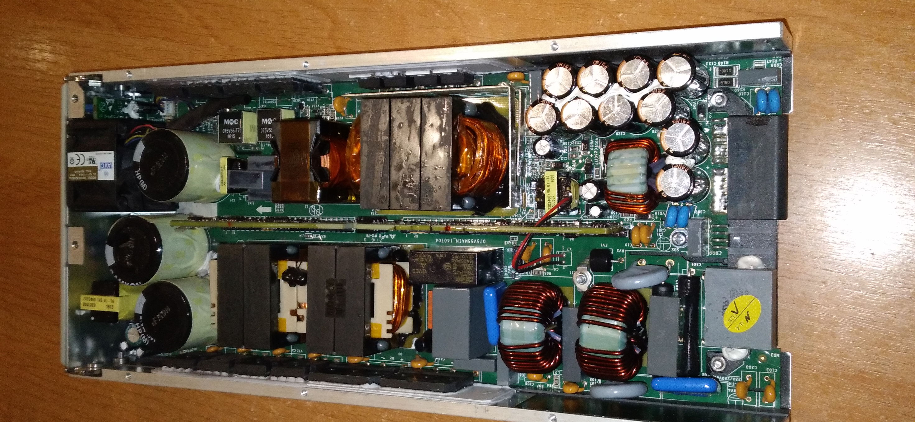 Ууу, звэрь какой! Была бы схема, то проще было бы разобраться. Ну а так как обычно надо копать от силовых транзисторов: что ими управляет, то есть какой шим-контроллер, ну а там уже смотреть можно ли его как-то обмануть. Ибо наверняка в него понатыкано всяких мудрёных защит. Но глядя на этого монстра, на фоне безгранично возникающего уважения растёт и сомнение в том, что их получится все обойти. :-D Но.. кто не рискует, тот.. и не рискует!