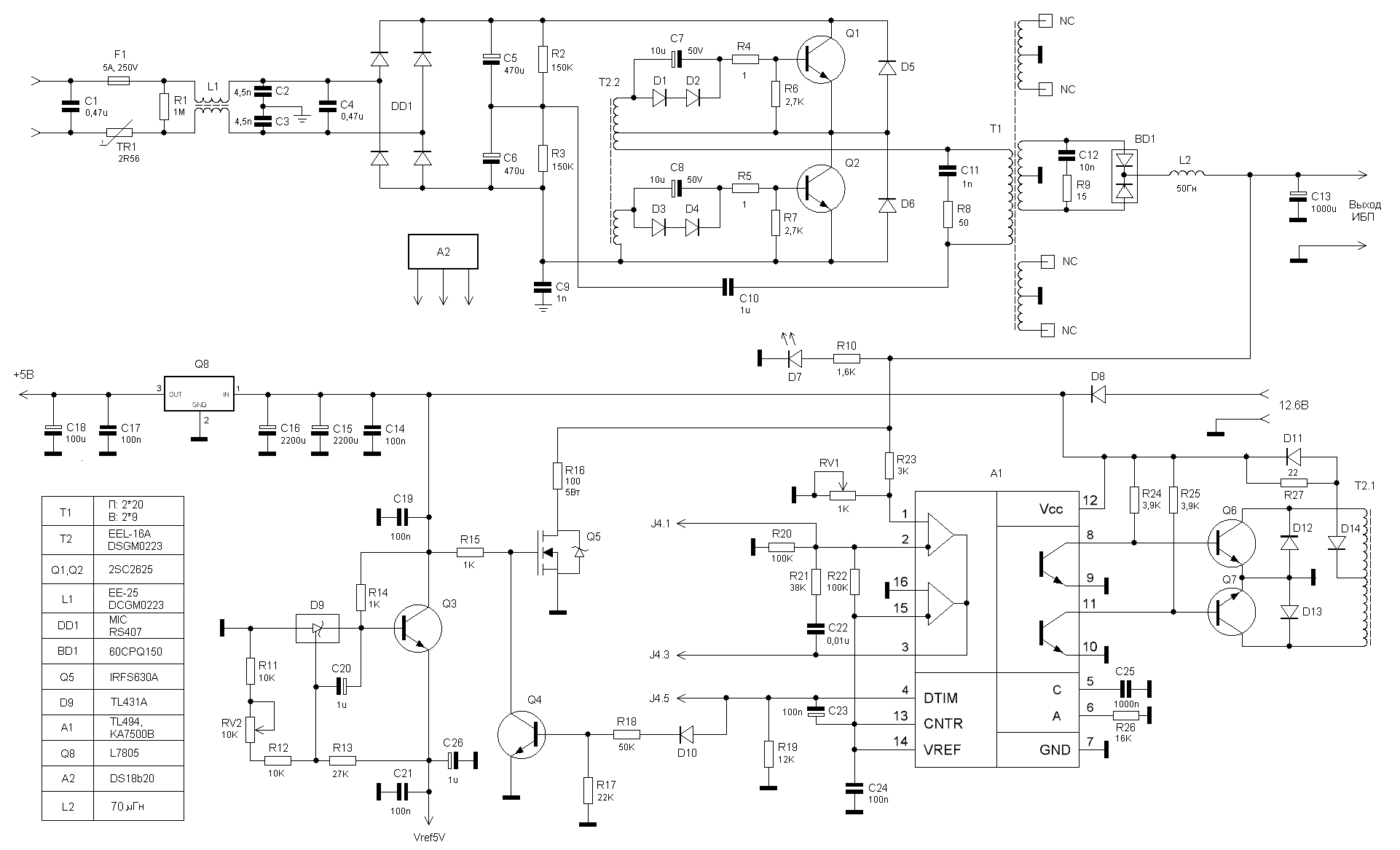 Выкладываю свою схему ИБП, может кому пригодится кто собирает ИБП из запчастей.. там же источник опорного напрядения 5В и просто 5В..