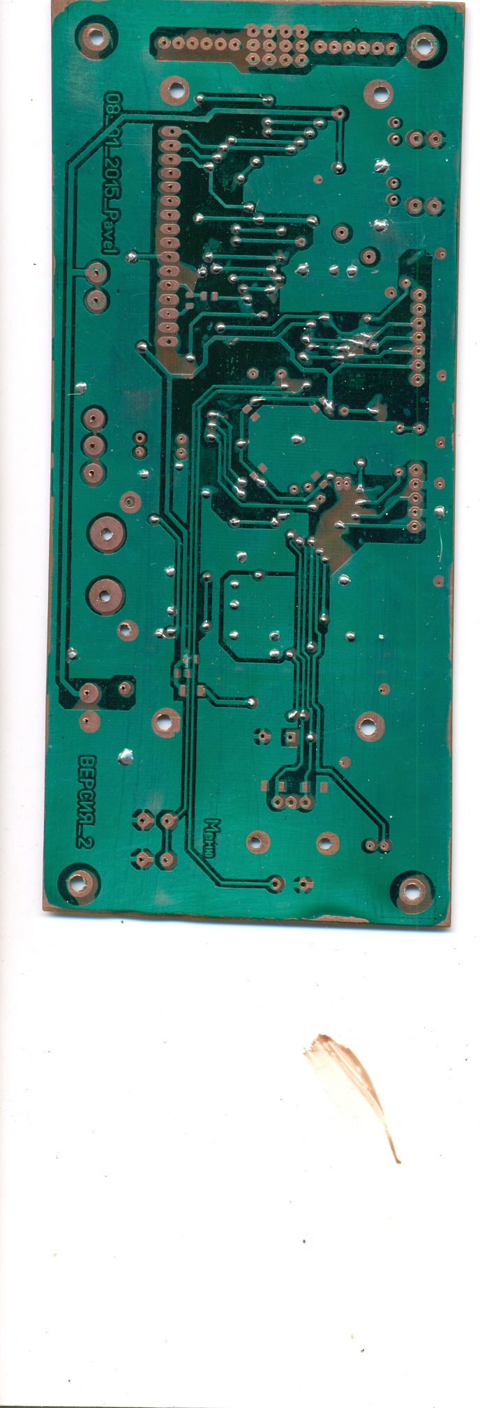 oka275, восхищаюсь!!! Скажите, плату сами делали? Я использую двухкомпонентную китайскую маску, но у меня ни разу не было такого результата. Вот моя плата (тоже по разводке Павла)