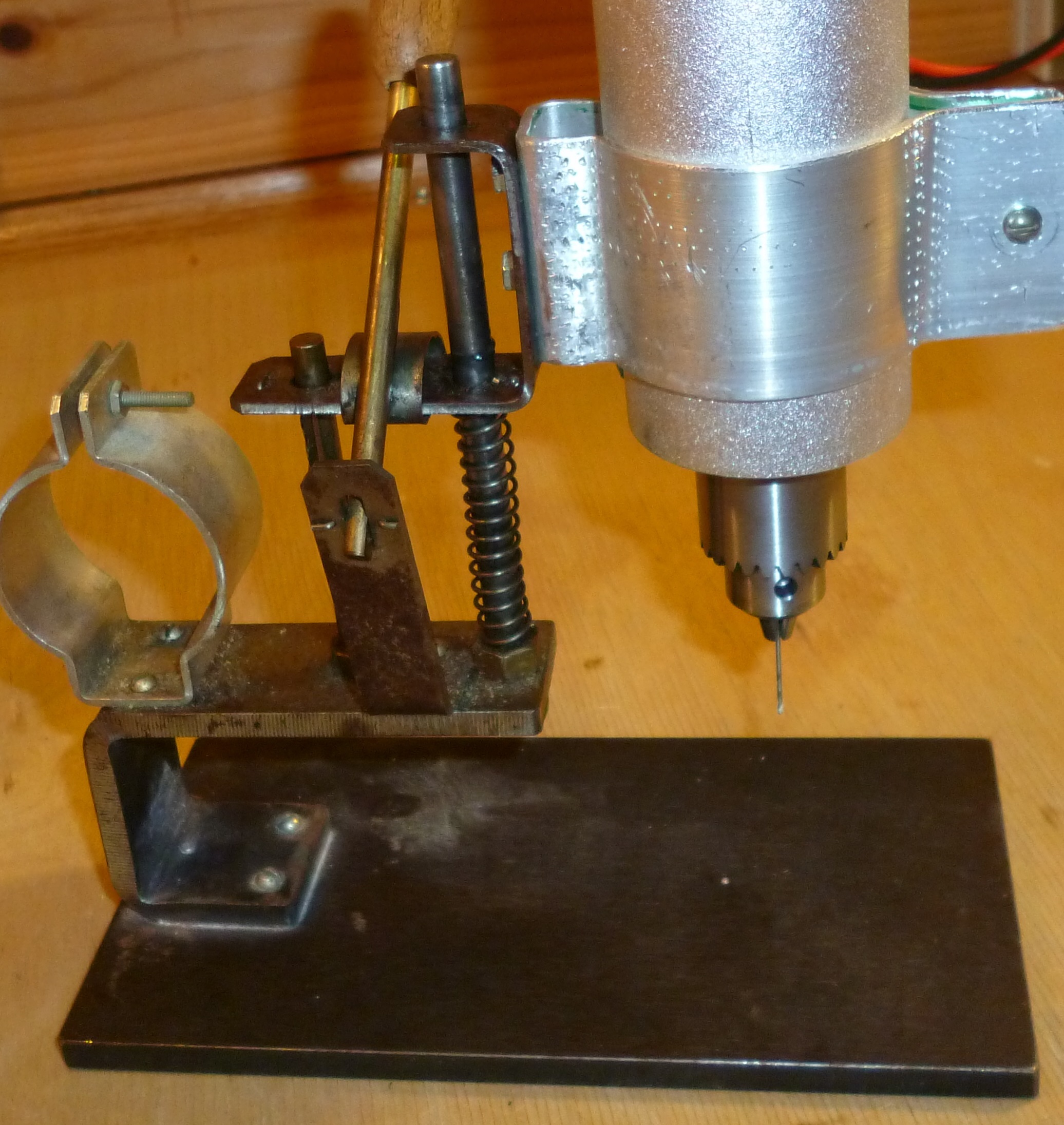 Что делает неудобным его быструю замену. Вам придется постоянно задирать дрель. И использовать сверла строго определенной длины и соответственно определенного диаметра, во второй ссылке (деревянная основа), или постоянно регулировать высоту микродрели на стойке в первой ссылке (металлическая основа) . Дело в том, что при движении микродрели вниз меняется расстояние между осью сверла и стойкой крепления. Посмотрите внимательно, или сделайте что-то похожее на параллелограмм, и проведите эксперимент. При достаточной большой длине стороны параллелограмма и небольшом ходе сверла (микродрели) смещение не существенно и им можно пренебречь. А вот если увеличить величину хода сверла, то при движении сверху в низ сверла оно будет смещаться и отверстием не совпадает. Я использую станок не только для сверления плат, но и для мелких модельных работ.