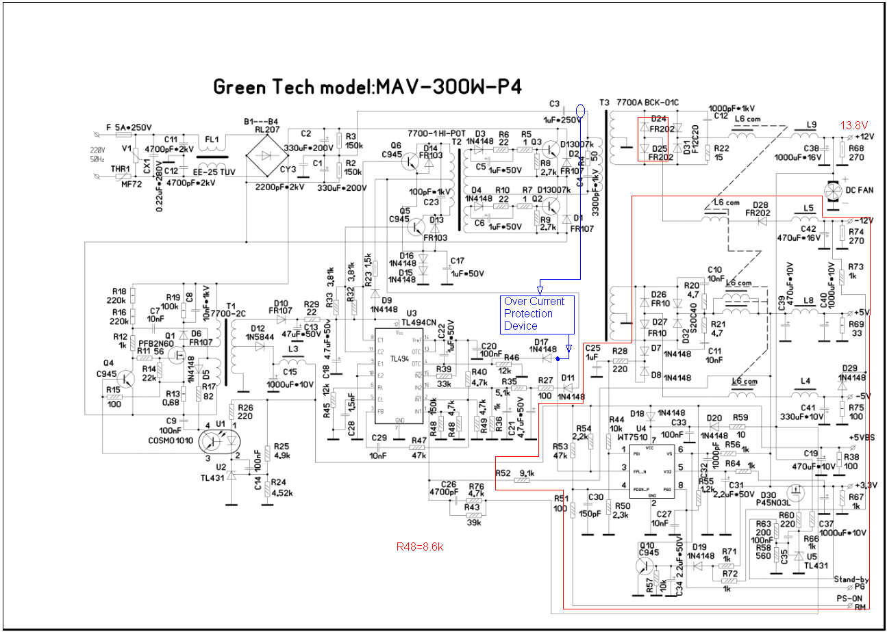 Приветствую всех форумчан! Кто может подсказать как переделать БП от ПК в силовой для ЗУ? Подогнали мне вот такой блок питания как на фото (не рабочий пытаюсь реанимировать). Выполнен он вот по такой схеме (как на фото, только силовые ключи мощнее и применен аналог TL494 - AZ7500 и супервизор на LP 7510. Порылся в интернете нашел как можно отстегнуть от общей схемы супервизор со всеми ненужными напряжениями (фото переделки во вложении). Теперь вопрос: Как правильно, адаптировать схему для силового блока ЗУ и что это за токовая петля ( нарисована синим) и вообще нужна ли она?
