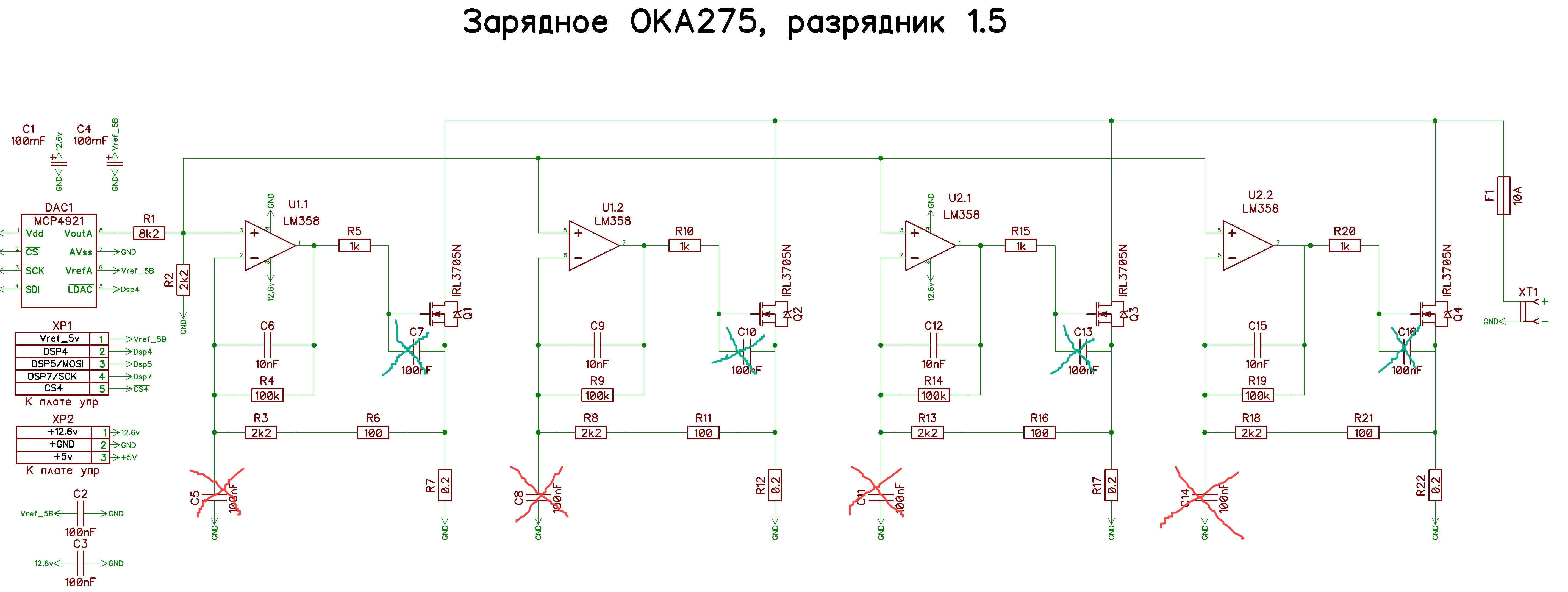 Буду аккуратнее Валерий! У меня очередной вопрос/проблема, ребята по версии ЗУ 1.5. По вашим печаткам Валерий. Собрал новый силовой блок, работает замечательно. Силовой транс даёт о себе знать только на 17амперах, издавая слабые звуки потрескивания. Теперь проблема с попыткой перекалибровать амперметр и Ограничитель тока. После теста, пишет- Нет ограничения! А на клеммах силового остаётся напряжение 30в, которое можно сбросить- если зайти в калибровку вольтметров. Я так понимаю, что на лм358, управляющей разрядом не приходит сигнал? Что и где искать, друзья?