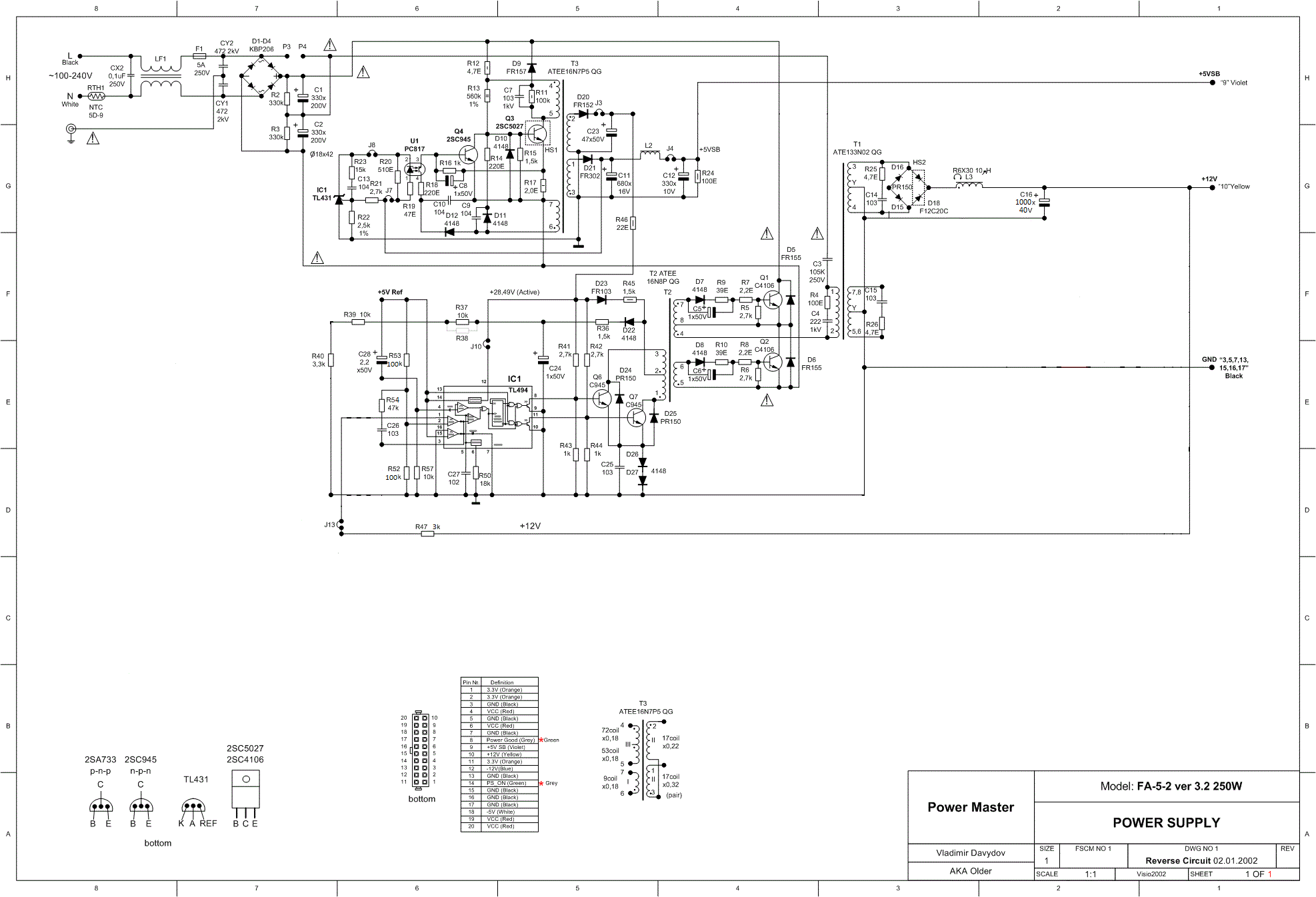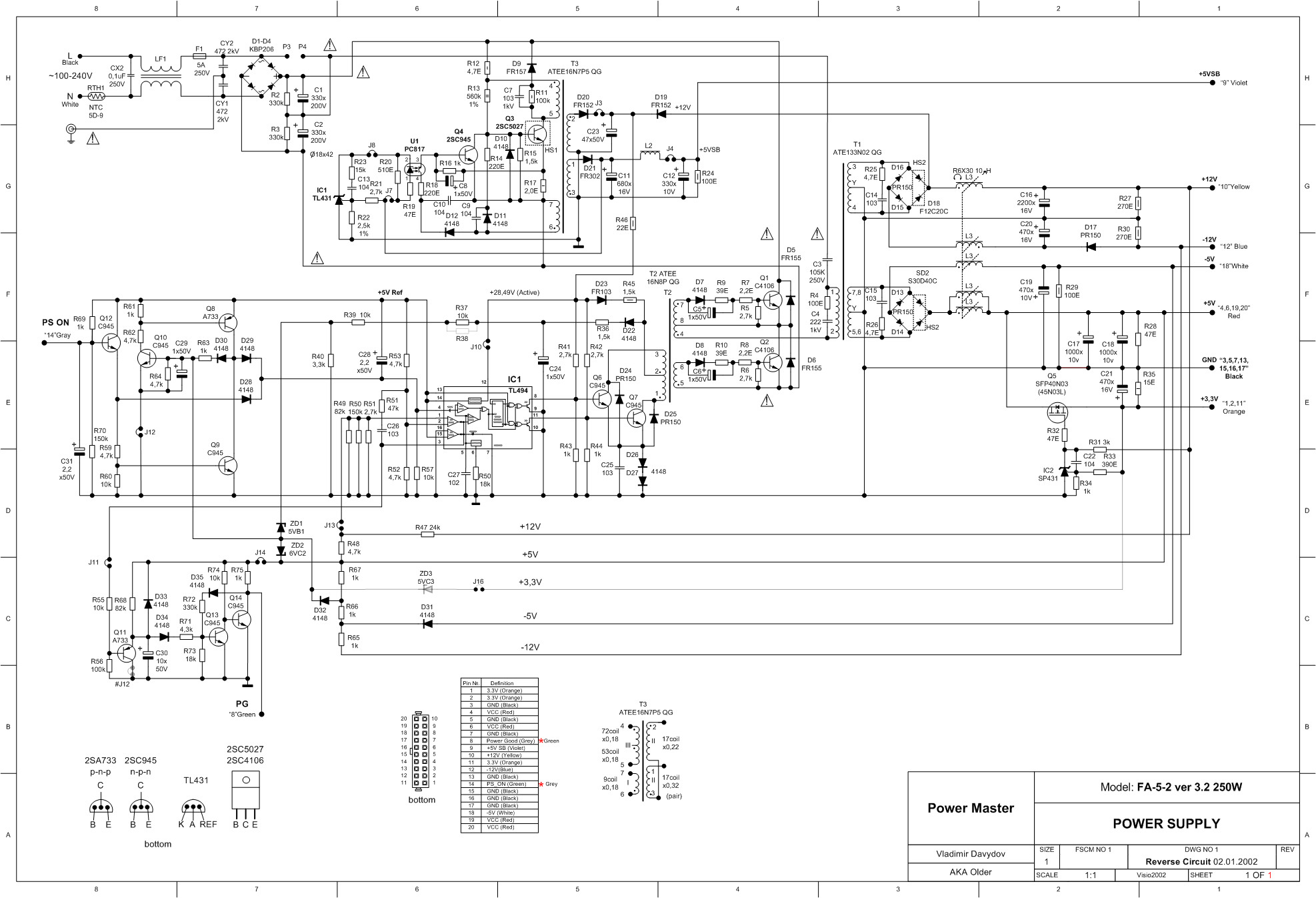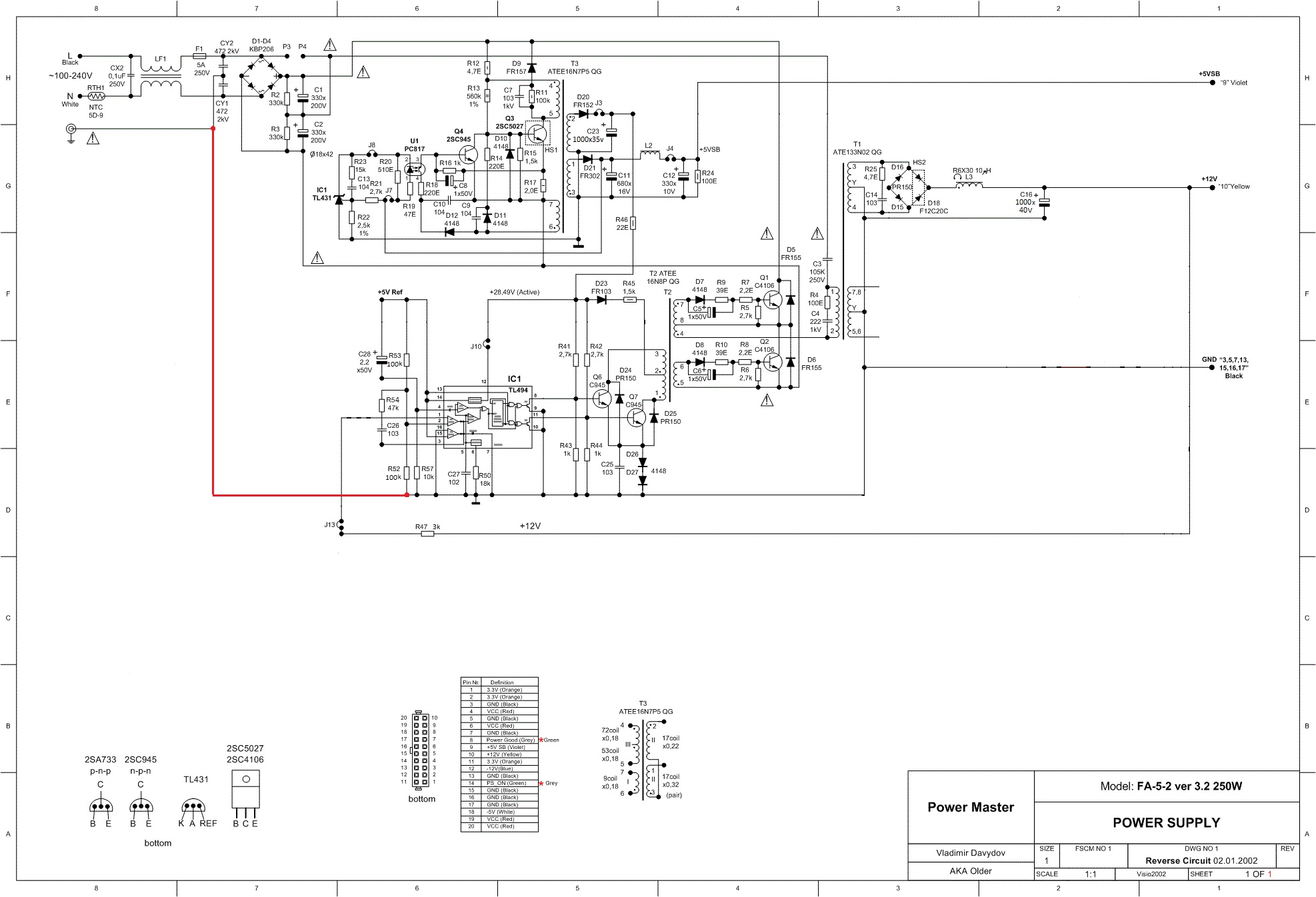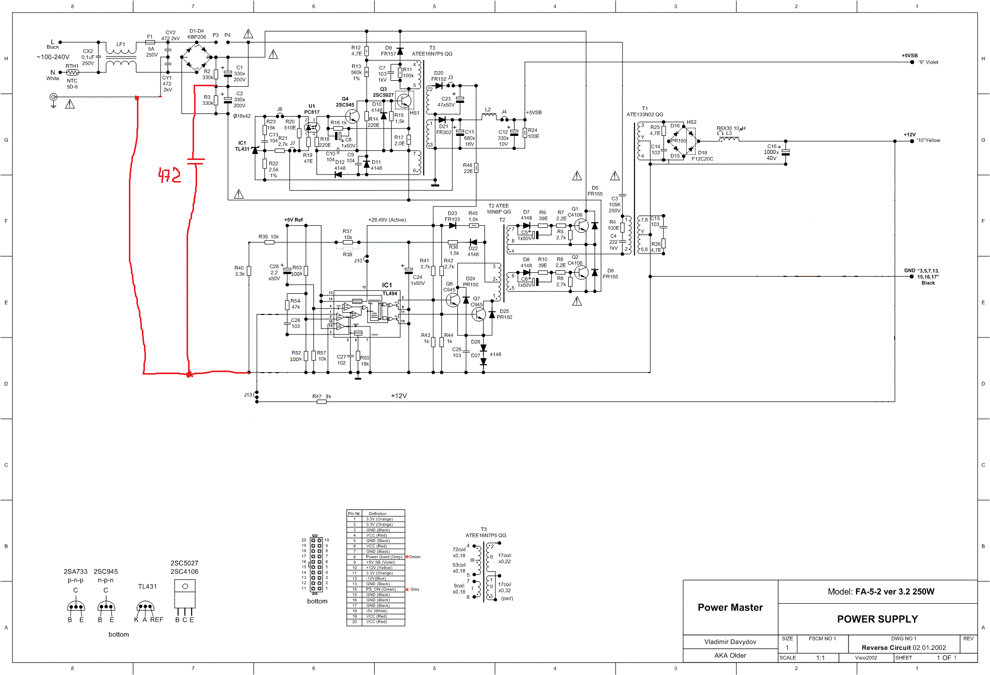 Всем доброго времени суток! Прошу помощи в решении вопроса по переделке компьютерного БП в ЗУ. Переделал я данный БП по схеме предоставленной Алексеем, после включения в сеть сразу появляются сверчки, на выходе 10,9в. Сверчки усиливаются если дотронуться до шлейфа подключения к плате управления. Пробовал запитывать ТЛ-ку от внешнего источника 12в, сверчков никаких нет, полная тишина и напряжение тоже в норме 10,9в. Сильно не критикуйте это мой первый опыт по переделке БП. Полную схему БП и что в схеме убрал прилагаю. Заранее благодарю за помощь.