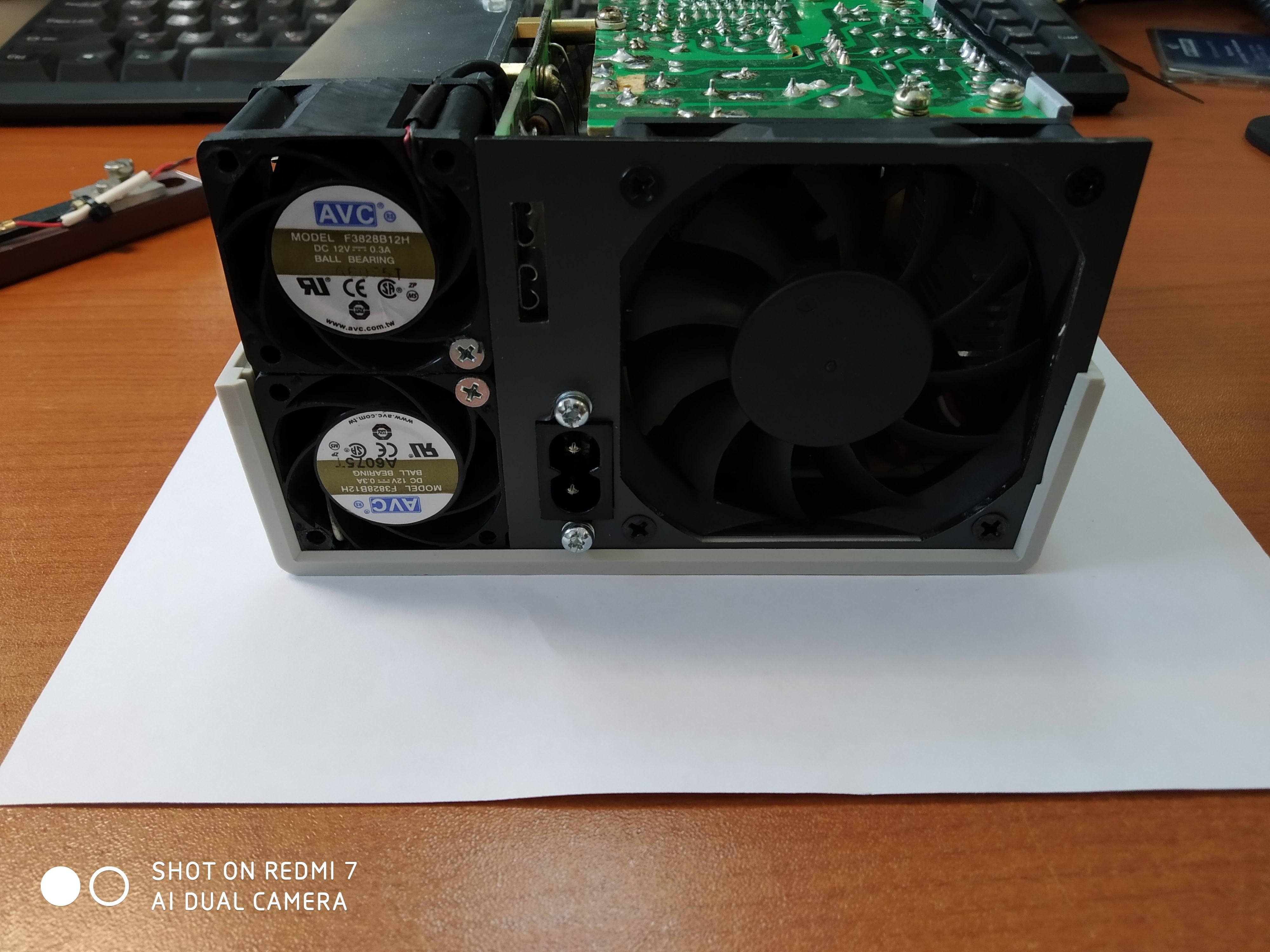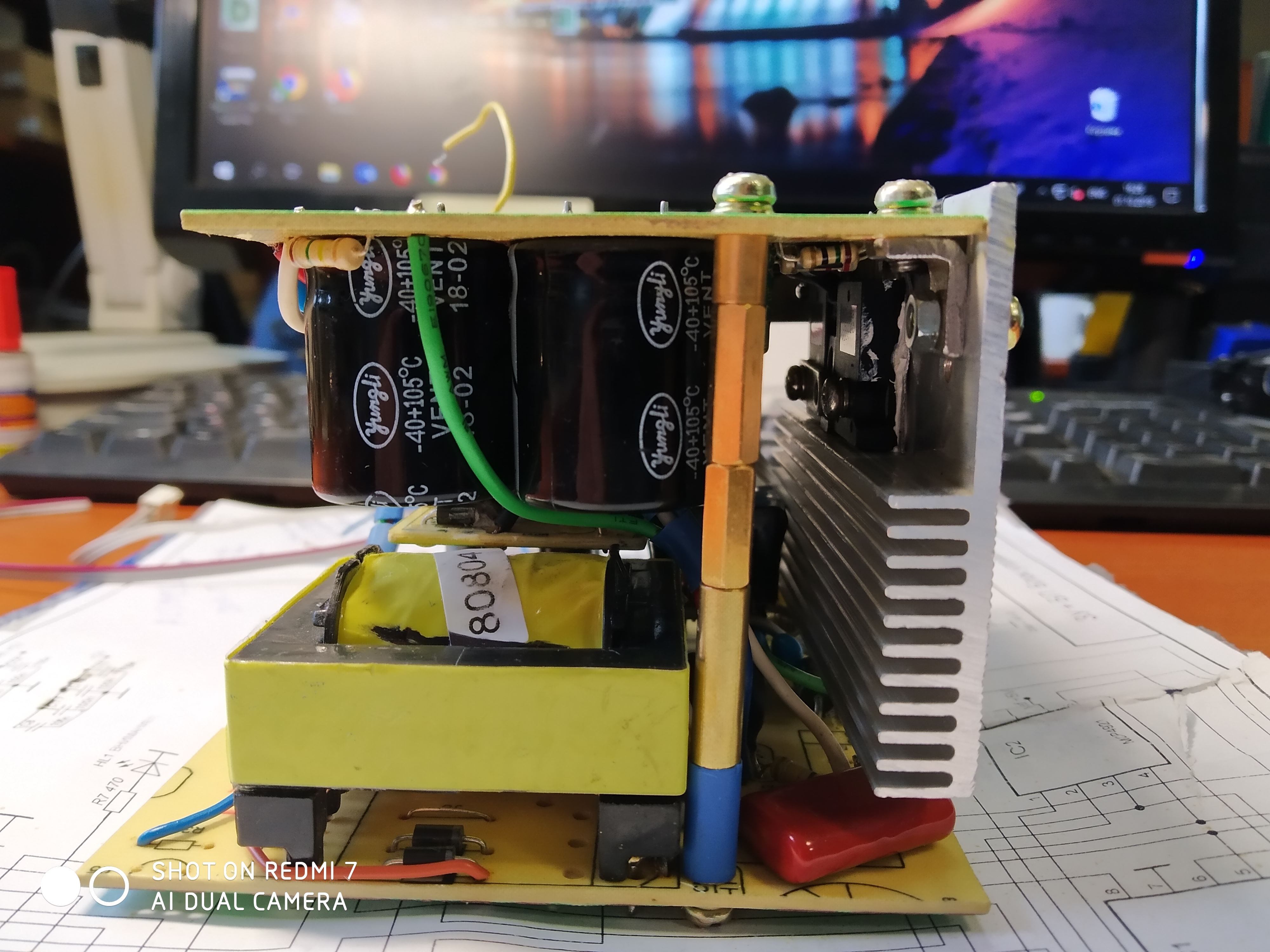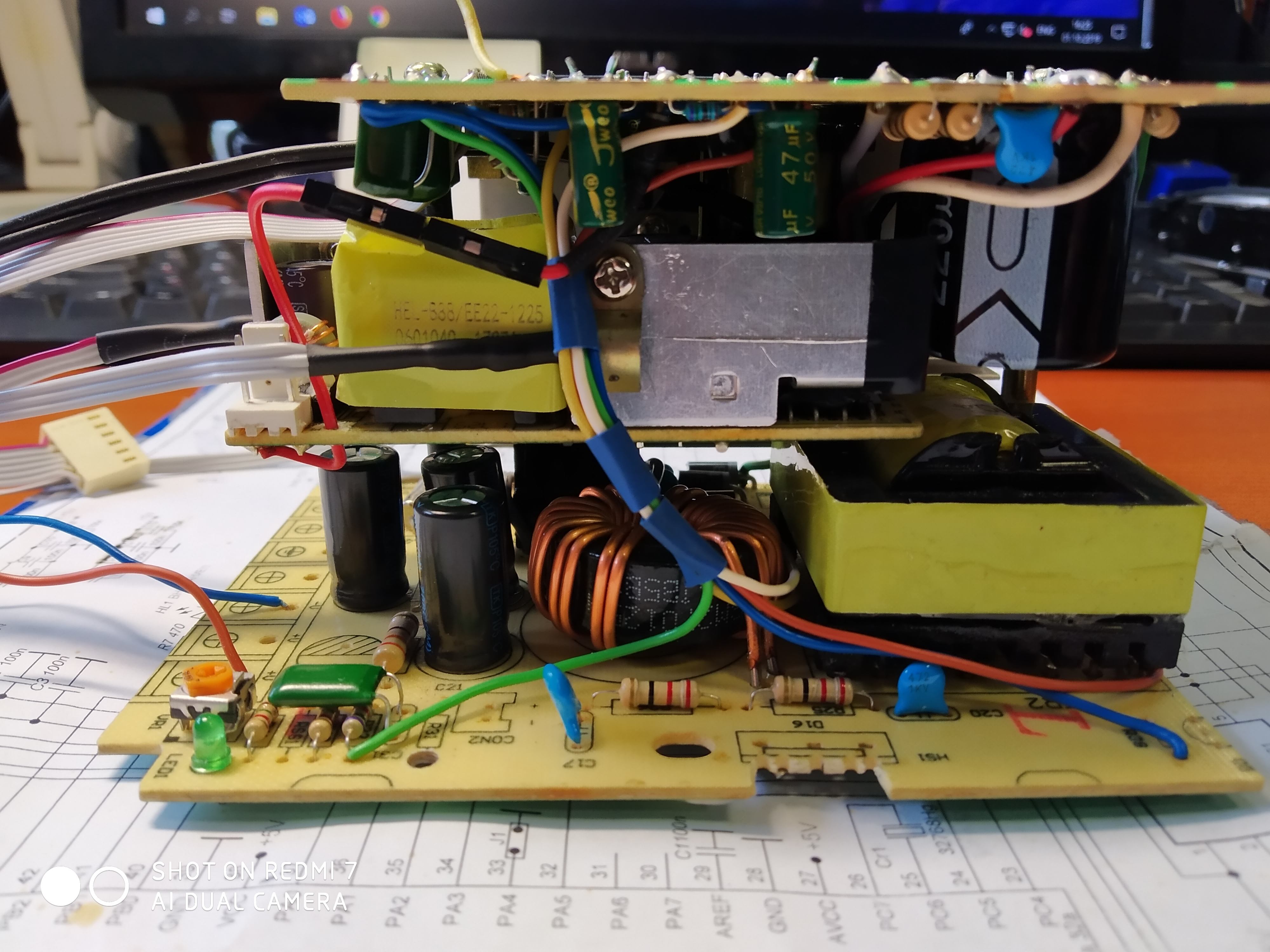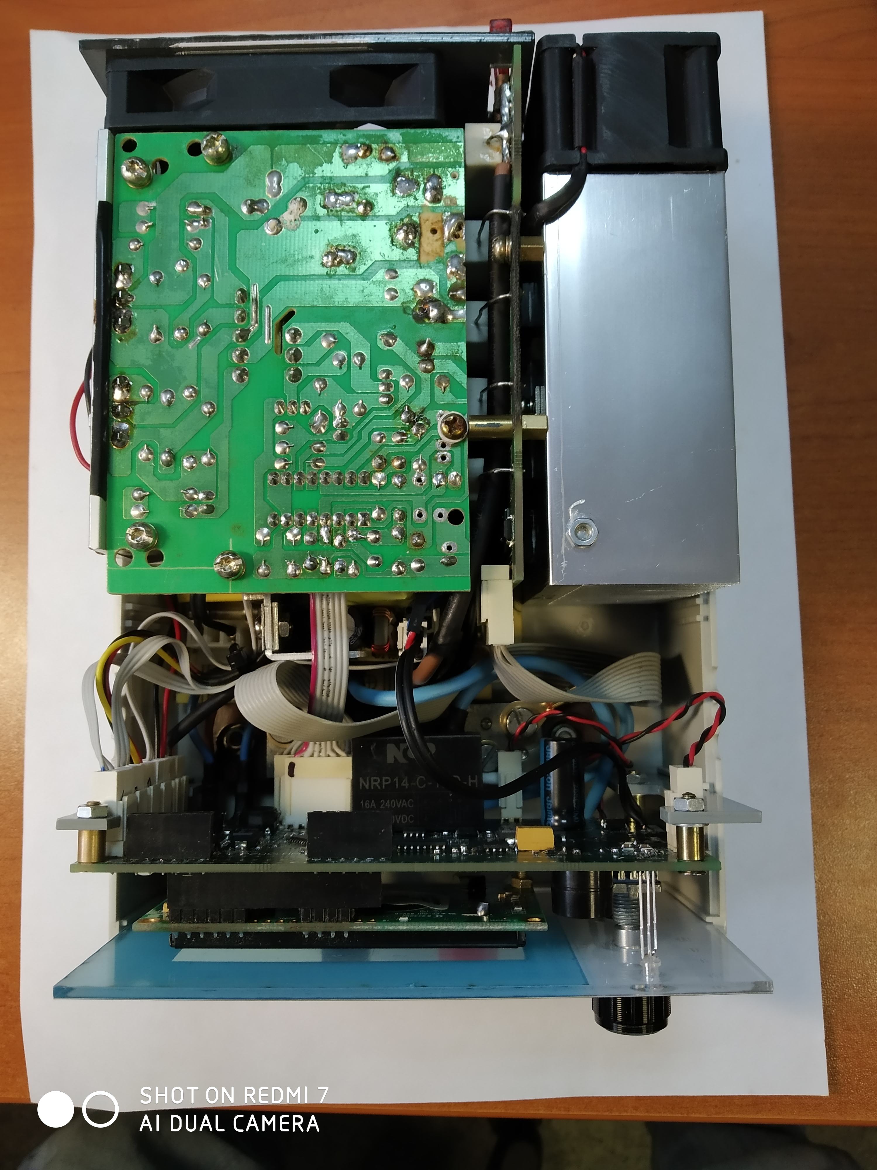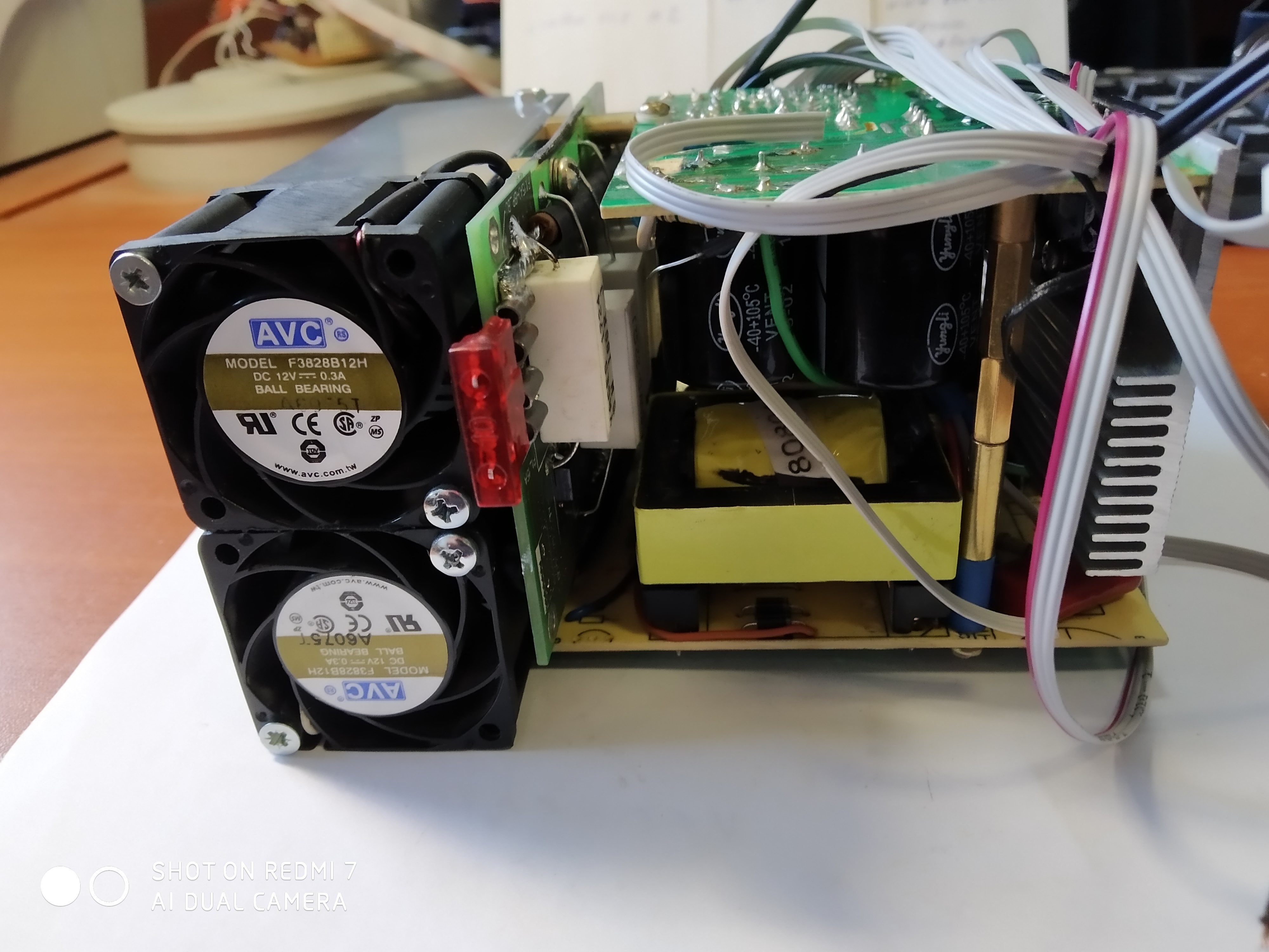 Комментарий к файлу: Платы БП соеденены между собой отдельно по высокой и низкой стороне. Между платами влез БП от адаптера 12В 2А доведенный до 12,6 В.