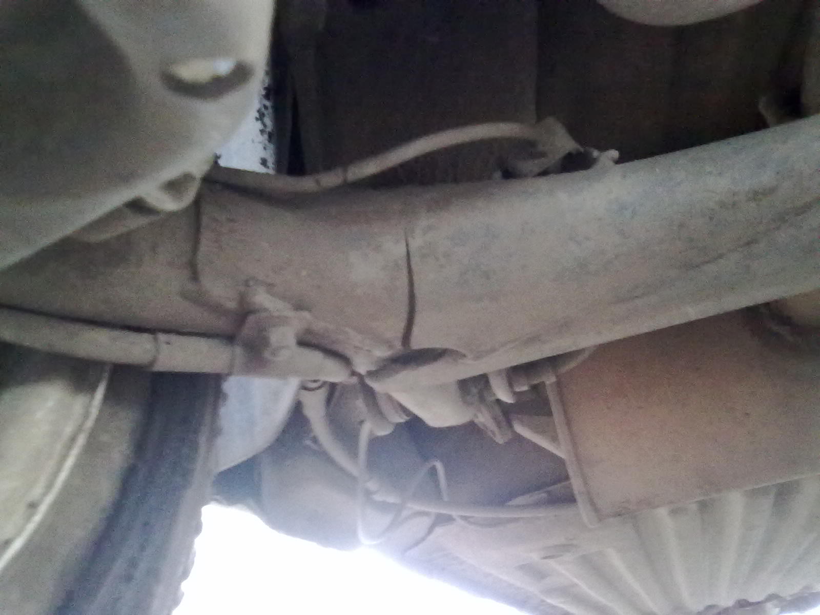 И с той стороны где трос ручного тормоза(наружная сторона), походу тоже труба лопнула! Лечится так же снять фаску, проварить трещины и накладываем лаку в виде пластинки или часть трубки(второе муторнее) с ново провариваем только по вдоль трубы(поперек не стоит )