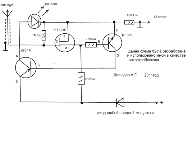 Ныне на базе этого стробоскопа стали выпускать комбинированные (строб+тахометр+вольтметр),добавлен провод,который подключается к катушке и цифровой индикатор.Но это уже модернизация простого прибора.