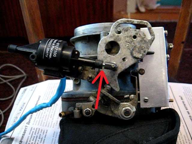 Для этого не надо снимать кастрюлю, но желательно иметь фонарик. Подсвечиваем со стороны бензонасоса и смотрим. Расстояние от наконечника штока до самого шаговика должно быть таким, как указано на фото. Именно таким, но с небольшим допуском +3..4мм, -0мм, должен быть зазор на полностью взведенном подсосе. То есть приходим утром, открываем капот и проверяем зазор. Если зазор больше, значит при закрытии заслонки шаговик пропустил шаги! Пропускать шаги он может только из за того, что ему тяжело ворочать сектор подсоса. Тяжело потому, что сервисгоблины наверняка не парились после регулировки карбюратора над тем, на сколько этот сектор легко перемещается. И чем на улице холоднее, тем больше вероятность более тугого перемещения сектора подсоса, а в следствии этого увеличивается вероятность пропуска шагов и взвода подсоса не до конца, что приводит к проблемам запуска.