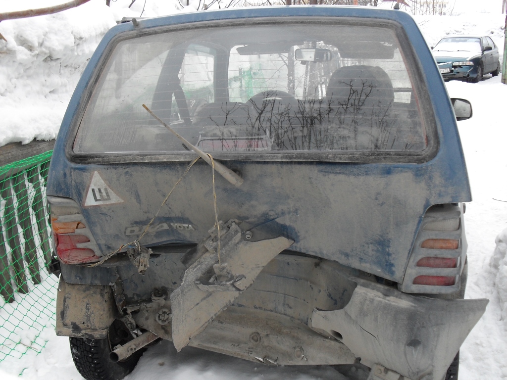 может надо кому окульку целиком на запчасти? пострадала сильно только задняя часть авто. но стекло на задней двери осталось целым. по цене договоримся.