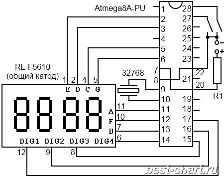 Почему этого не могло быть без МК? Потому, что без МК это требовало огромной выдержки и оснащения, чего у меня, ребенка в то время, не было. Вот пример схемы простейших часов на россыпухе: