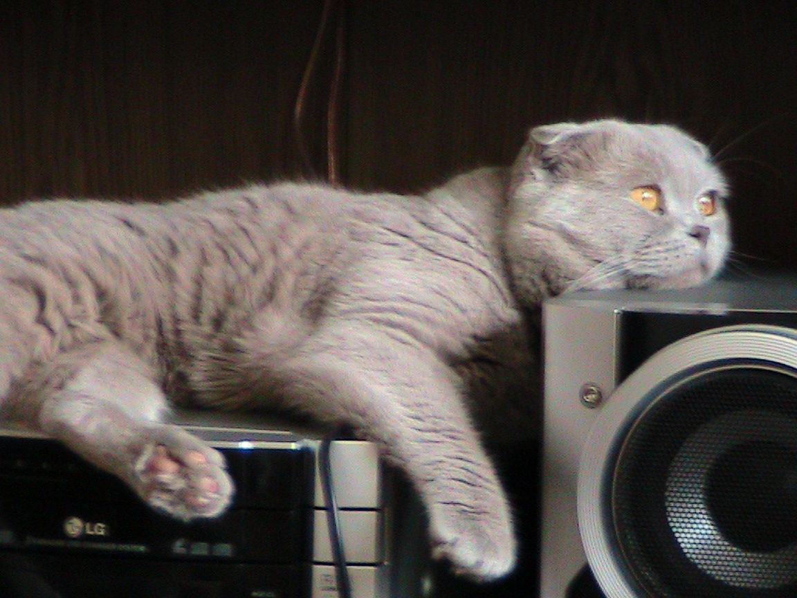 Нет его приличной фотки, но особенность породы видна - уши не прижаты а именно вот так в обычном положении. В результате морда приобретает "совинный" наглый вид :)