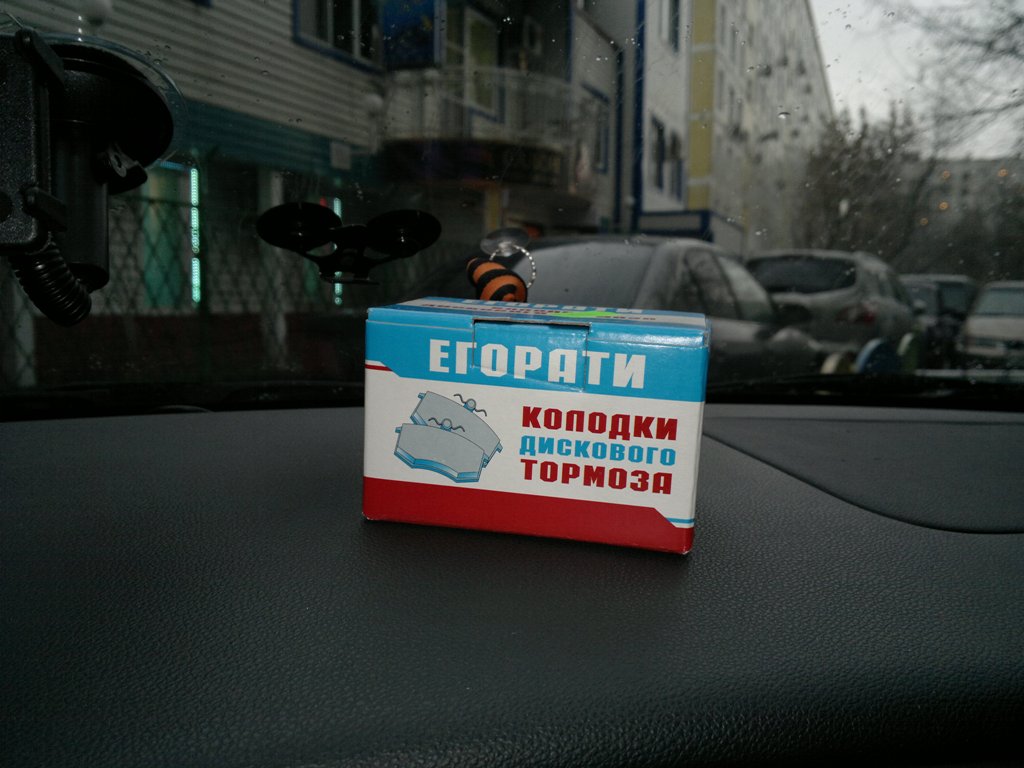 Выносят мне 4 колодки, замотанные стопкой в потрескавшийся целлофан. Маркировкой на них служат какие-то невнятные буквы на неясном языке... Ну, думаю, ситуация подтверждается... "Говно твои колодки" - говорю продавцу - не буду, дескать, брать.... А он мне говорит - погоди, есть тут еще какие-то. И вытаскивает пыльную пачку колодок, изготовленных в рашском граде Егорьевске фирмой с нелепо звучащим названием "Езтати" под не менее дико звучащей торговой маркой "Егорати" :D Тут уже я не удержался и купил :D