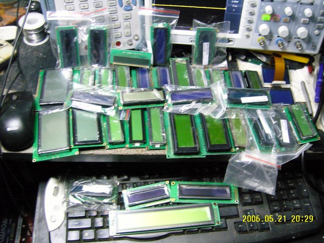 Вот,как и обещал фото кучи разных дисплеев.Там и двух строчные и четырех строчные,и OLED дисплеи,а так же и 12864.Шестнадцати символьные,20-ти символьные.А так же,большой дисплей который лежит рядом с пачкой сигарет,он двух строчный 20-ти символьный.Есть еще такая же куча LCD дисплеев и телефонных тоже.Не хвастовства ради выкладываю фото дисплеев,это еще раз подтверждает,что нет в них дефицита и стоят они гроши.