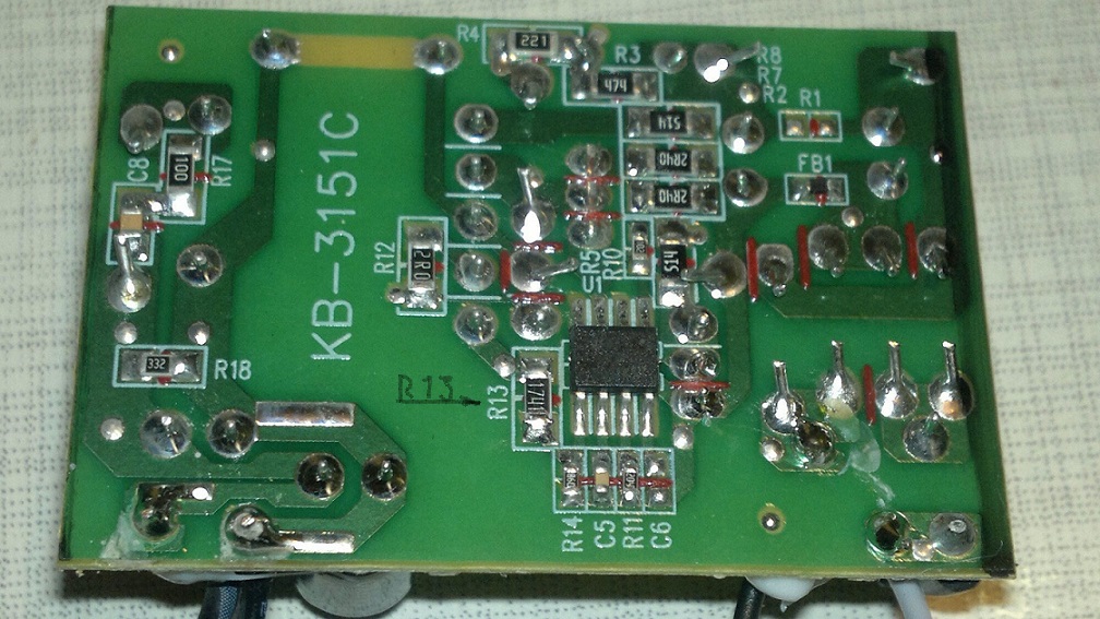 Итак, достали плату, перевернули, ищим резюк R13, он та нам и нужен. Его необходимо заменить на другой номинал согласно нужного нам напряжения:
