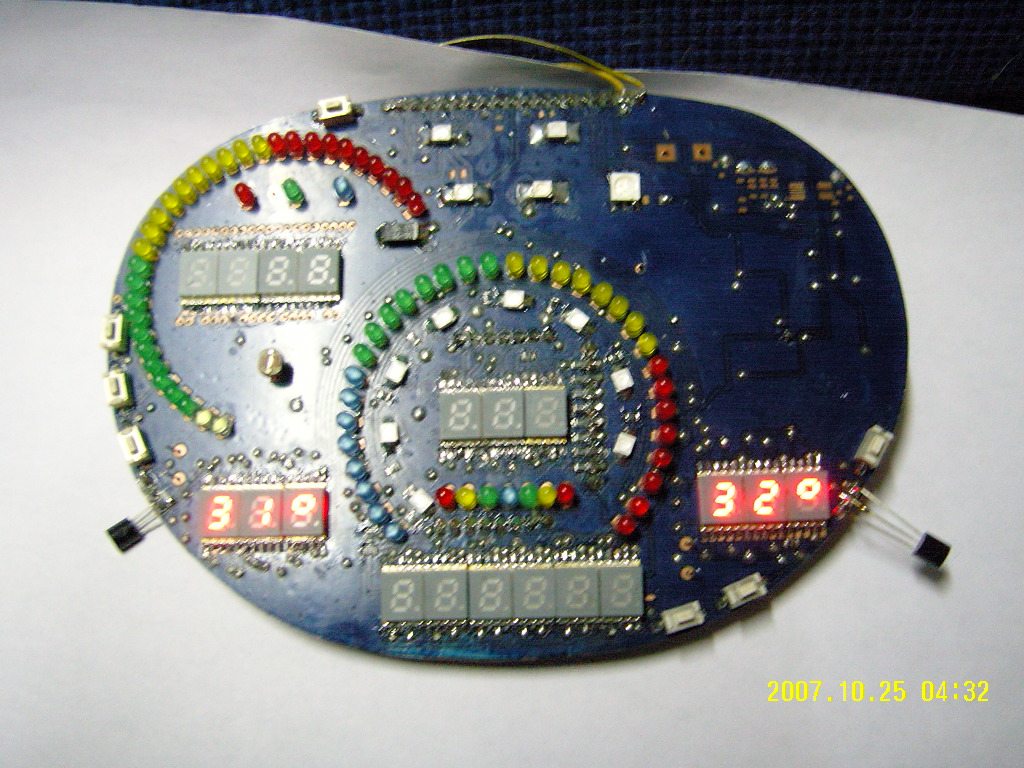 uni-el Спасибо за поддержку.Буду стараться все сделать красиво.Вот,запустил второй термометр.Следующий запуск будет спидометра и тахометра.На них у меня все детали есть,осталось дорисовать чуть чуть печатку второй платы.