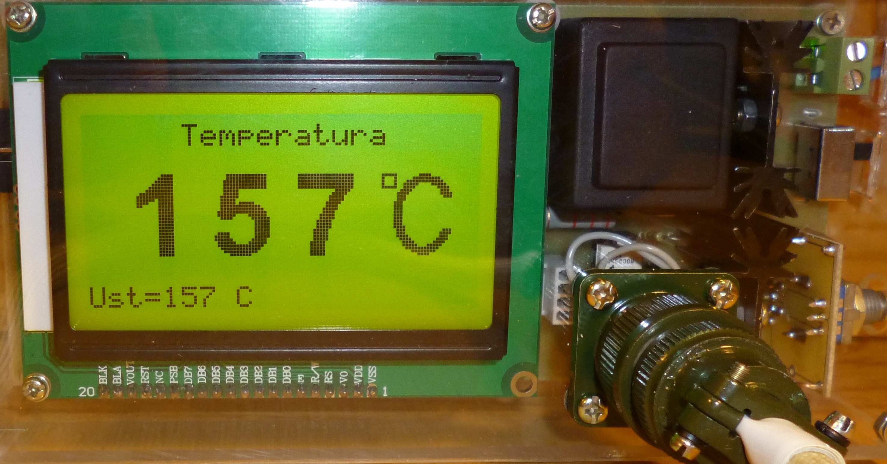 Схему термопары взят отсюда, http://chipmk.ru/index.php/ves-mater/12 ... -termopary , немного переделал, ибо использовать диод на входе в качестве стабилизатора напряжения недопустимо, изменяет прямое напряжение в зависимости от температуры наружного воздуха, проверял, термопара от обычного китайского мультиметра. Пример реализации ПИД регулятора здесь http://www.mcu.by/avr-%D1%83%D1%80%D0%B ... 2%D1%8C-1/ , там три части это ссылка на первый урок (рекомендую посмотреть все видео, особенно вторую часть). Если есть желание использовать пример в "лоб", то в качестве выходного управляющего элемента нужно ставить твердотельное реле. Если хотите использовать симистор, ШИМ придется писать самим. Вся документация (что есть) находится в архиве, программа полностью работоспособна, проверено. Хотя программный код требует еще доработки и лишен "изящества" (буду рад улучшением и доработкам). Все желающие могут переписать под свои нужды, к тому же в уроке есть исходник кода. Коэффициенты подобраны мной для конкретного утюга Kp = 18, Ti = 4, Td = 28 (Настройка ПИД коэффициентов), для реализации ваших объектов подбирать придется самостоятельно, интегральную составляющую рекомендую ограничить (см. комментарий в программе). И фото напоследок. Надеюсь все это кому-то пригодится.