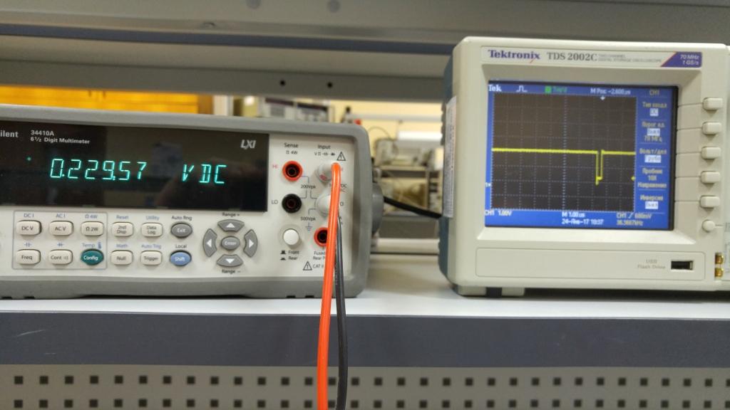 Поставил 800 ом (750 Ом небыло) с движка переменного резистора на 2 ногу TL494, возбуждение ушло, выставилось 26 вольт, минимальное 0.22 вольта, как будет работать с платой управления, пока не известно. Буду экспериментировать после работы . Осциллограф подключен к выходу микросхемы.