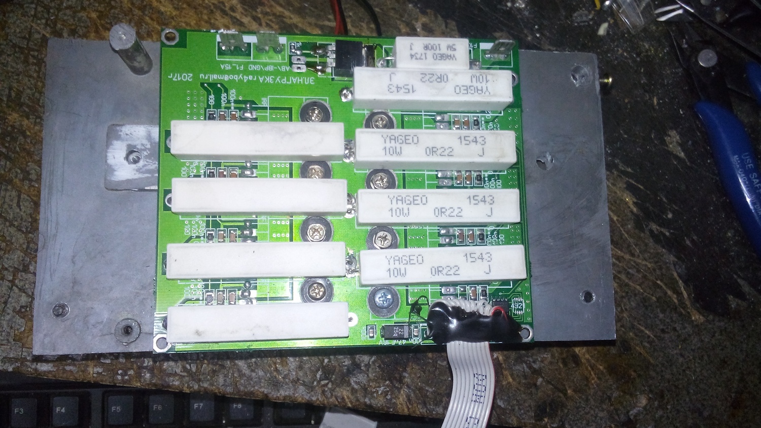 Проверял вчера плату разрядника на 8 ключей от Вячеслава. Без платы управления. Прикрутил радиатор 150х140х58 мм, два вентилятора обдували 90 мм (3400 об/мин). При токе 20А и напряжении 12,5В через 10 минут температура уперлась в 57 градусов и дальше не поднималась. Температура измерялась на радиаторе сантиметрах в 2-х от одного из ключей. Ключи посадил без прокладок, термоинтерфкейс - КПТ-8. Всё было собрано в корпусе.