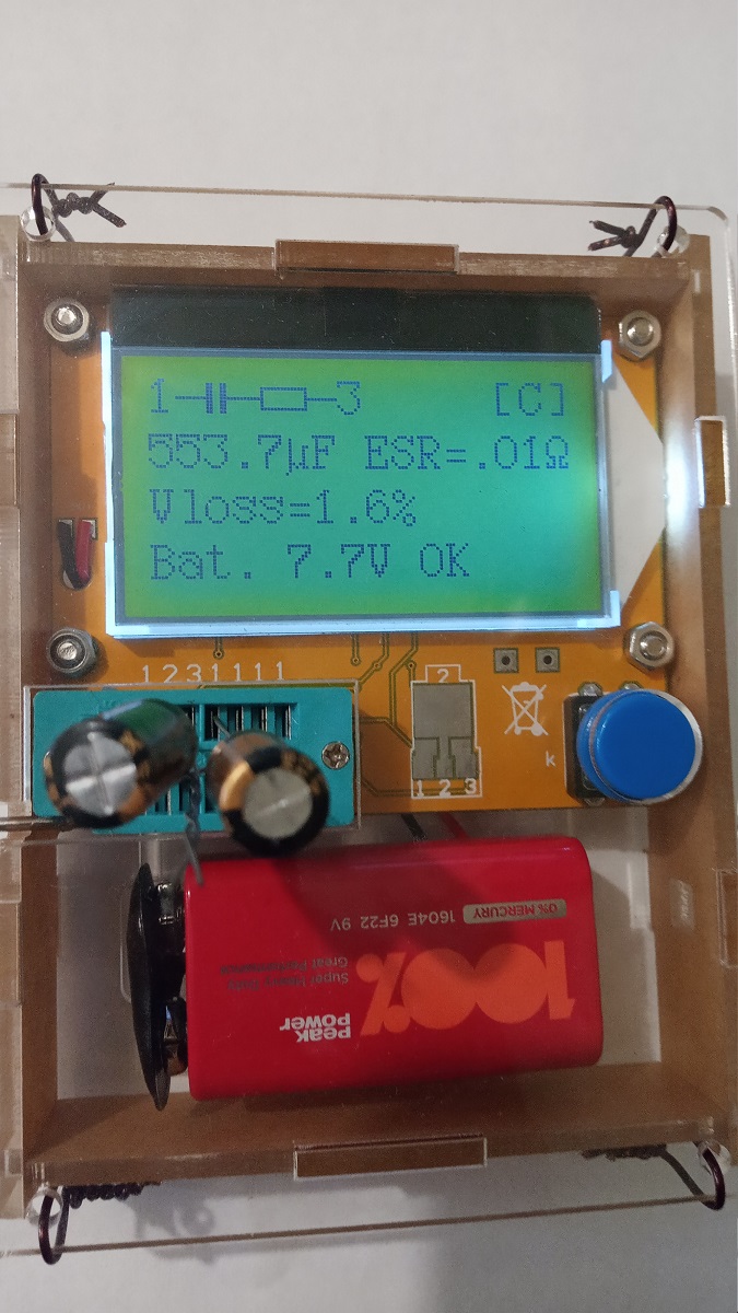 Ёмкость двух последовательно подключённых конденсаторов, на 1000мкф каждый (как в новой схеме) составила 550мкф. А куда пропало ещё 1500мкф?