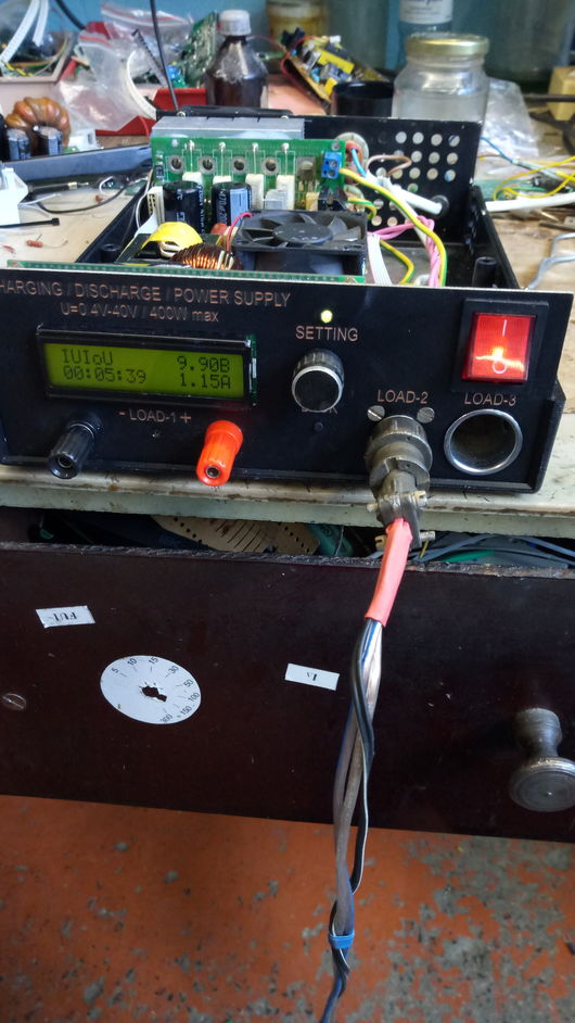 В результате получилось не плохое ЗУ с параметрами : выходное напряжение регулируется от 0,2 до 45-50 В, ток до 25-30 А ( конечно надо следить за превышением допустимой мощности БП -донора.Например при выходном напряжении 45-50В ток не более 9-10А, при мощности донора 400-450Вт.Ну а при меньшем напряжении соответственно ток увеличивается.Получилось довольно компактно и без кучи проводов.Если кому будет интересно, выложу фото.