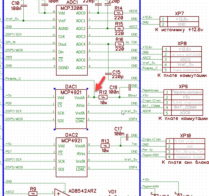 МК управляет по SPI цапами, ацп и общение с Атмега8. Вот поэтому и не понятно, если цапы работали, то почему не работал ацп и не определялся контроллер вентиляции (тут должно работать все или ничего). Только одно предположение, у МК выбиты 22 и 23 ножки или на них был обрыв (непропай) или КЗ при монтаже (сопля).