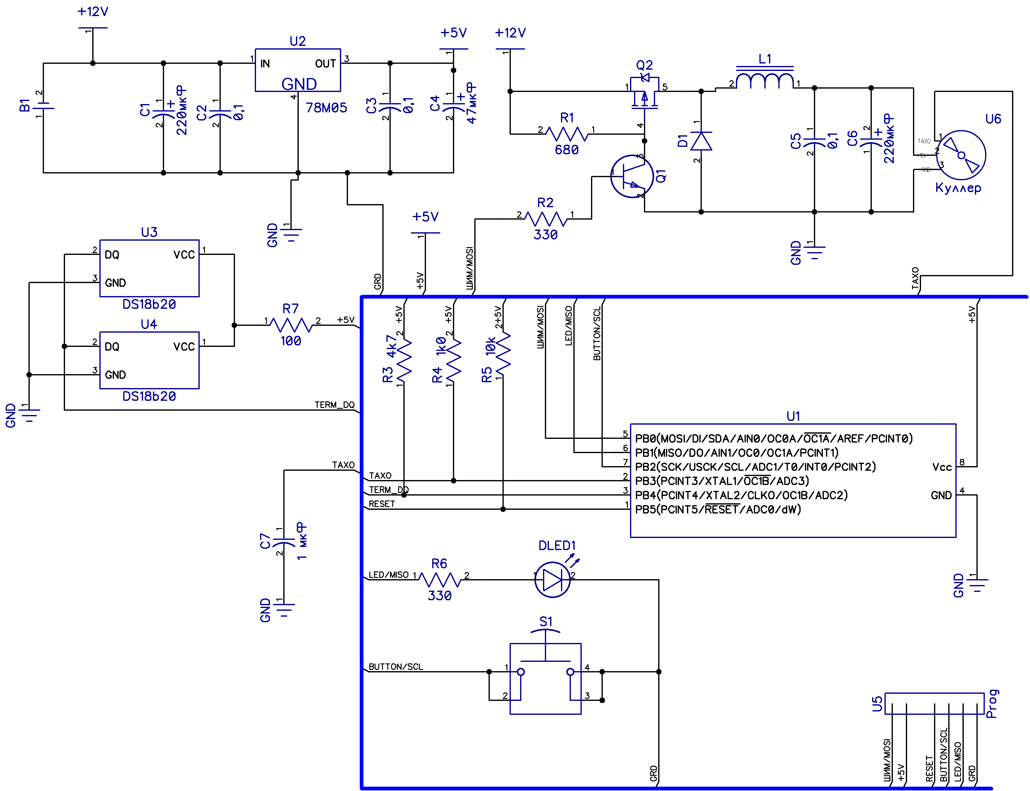 Комментарий к файлу: Схема. Версия 1.00. Примененный МК - ATtiny45 cooler_control_ver1.png [ 322.28 КБ | Просмотров: 29077 ]